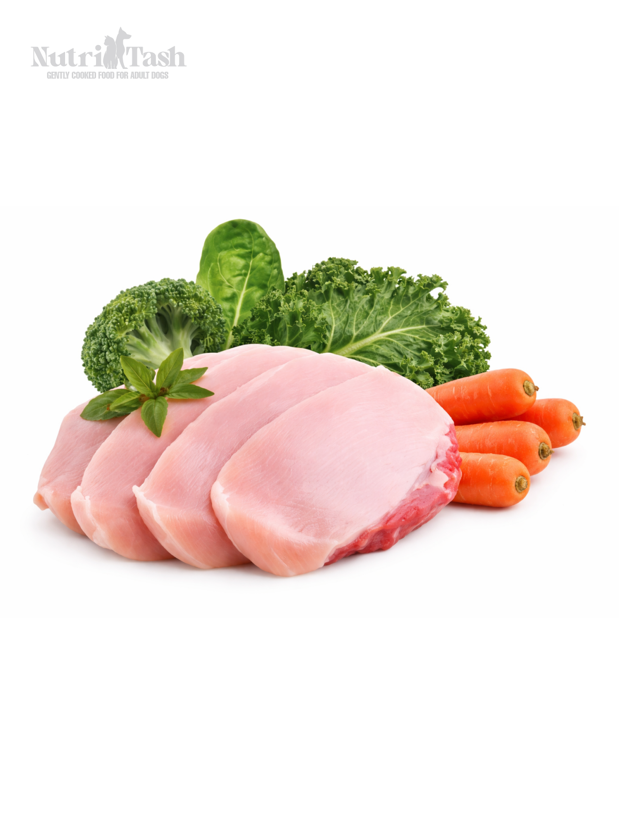 NUTRITASH Gently Cooked Turkey & Veggie Blend Dog Food is a wholesome, human-grade meal crafted with premium lean turkey and fresh vegetables to support your dog’s overall health and vitality. Gently cooked to preserve essential nutrients and natural flavors, this highly digestible recipe is ideal for adult dogs of all breeds, helping promote strong muscles, healthy digestion, and sustained energy.